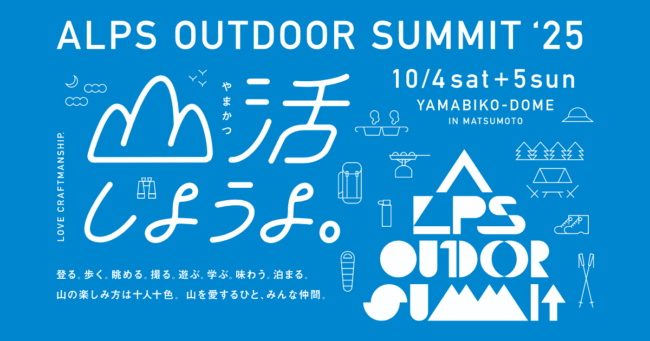 ALPS OUTDOOR SUMMIT 2025 参加のお知らせ EVENTBy monoral2025年10月2日〜イベント参加情報〜 2025年10月4日(土)10月5日(日)に長野県松本市にある『アイネットやまびこドーム…
